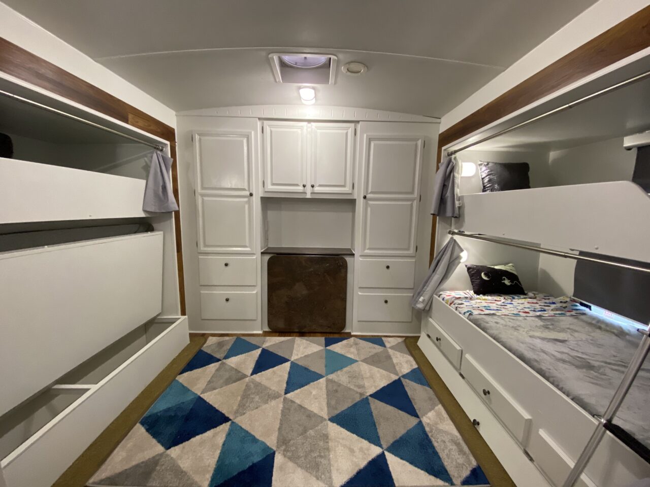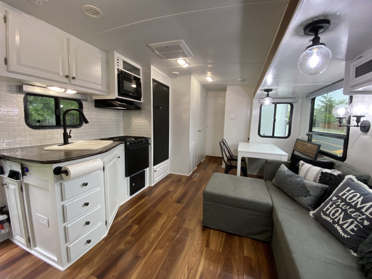 (Some photos of our beloved first RV. We renovated the whole thing including flooring, paint, furniture and decor. We made that 35-foot house on wheels a home we lived in for our first year on the road. We loved every ounce of it. We eventually upgraded to a 5th wheel, sold this RV to a friend, and eventually then downsized back to this RV when we became part-time travelers. (This RV was totaled in a hailstorm in storage in the summer of 2023. We were sad to see this beautiful home leave us for the last time. We made so many memories with it and it was a safe haven for us as we launched into full-time travel life.) Our time on the road was a sacred time for our unit. We took time to regroup as a family, bond, and reconnect. Many people have social media channels and we did not have one to follow our adventures publicly during that time. We took that time to cocoon and recoup. I took time to be still, write, and enjoy life, wherever the road literally took us.)